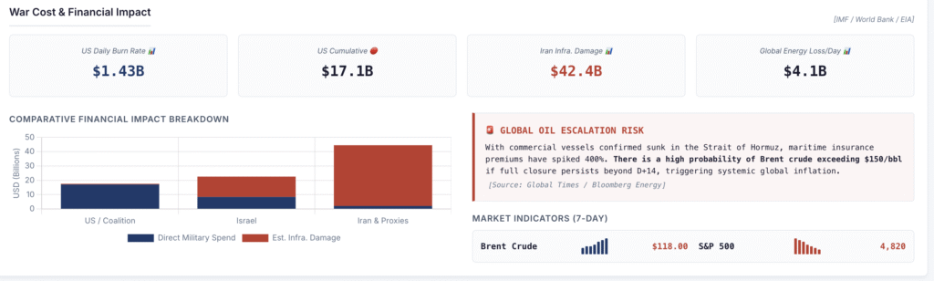 این جنگ برای آمریکا در مجموع در پایان روز دوازدهم حدود ۱۷.۱ میلیارد دلار هزینه داشته است.